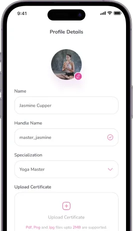 Access our platform from a web app and mobile devices, such as Android & iOS, to start your journey as a yoga instructor.